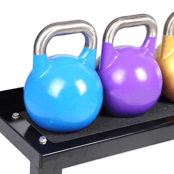 - Can hold up to 8-10 kettlebells per tier (2 x rows per tier)
